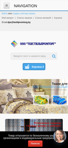 | AI-анализ | --- The web project Textilpromtorg.by is an online store selling textiles in Minsk, Belarus. The catalog offers various textiles at competitive prices. The website features a login and registration system for customers, with options to view orders, wish list, and an empty shopping cart. The company sells textiles to organizations and individual entrepreneurs on a no-invoice basis. The website provides a wide selection of high-quality textiles for clothing, curtains, bedding, and other applications, including Orenburg woolen blankets. |