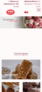 | AI-анализ | The website is an official online store of the confectionery company "Krasny Pishchevik" located in Minsk, Belarus, at Mayakovsky street, number 154. The store offers a catalog of products with prices and is open from 10:00 to 20:00 without weekends. Customers can place orders for delivery in Minsk or pick them up at the store. The contact phone number is 80 (44) 770-28-34. The website includes sections for cakes, pasta, chocolate, sweets, Zefir marshmallow, pastila, dragee, halva, and sugar-free iris. The site also features information about partnerships, gifts, and delivery details. The store has been in business for over 10 years and has served 844 |