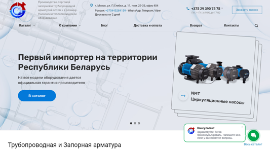 | AI-анализ | The website BelZapArmature.by is an e-commerce platform based in Minsk, Belarus, specializing in the production and sales of piping and valve equipment, including pumps and thermal technology equipment. The company offers a wide range of valves for pipelines, available for both wholesale and retail purchase. The product catalog includes various types of valves, such as shut-off, pressure relief, ball, gate, and globe valves, as well as various pumps, including circulating, centrifugal, and multistage pumps. The website also offers various fittings, flanges, and other accessories for piping systems. The company's contact information is provided, including phone numbers and addresses in Minsk and Russia, as well as WhatsApp, Telegram, and Viber contacts. Delivery is available within two days. |