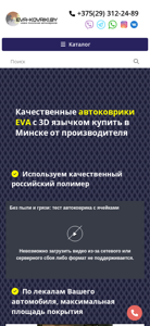 | AI-анализ | --- The portal eva-kovriki.by specializes in selling EVA car mats in Minске, Belarus. Customers can learn the pricing and place orders for EVA car mats for their car interiors and trunks with delivery via the website. The business hours are Monday to Friday, 10:00-19:00, Saturday, 11:00-17:00, and Sunday is a day off. The catalog includes listings for various car brands such as Acura, Alfa Romeo, Audi, Avatr, BAIC, BMW, Belgee, BUICK, BYD, Cadillac, Changan, Chery, Chevrolet, Chrysler, Citroen, Daewoo, Denza, Dodge, DongFeng, FAW, Fiat, Ford, Ge |