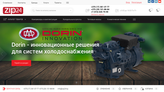 | AI-анализ | The website is an e-commerce platform selling industrial and commercial refrigeration equipment in Belarus. The title of the website translates to 'Refrigeration Equipment for Sale in Belarus | Online Store for Industrial Refrigeration Equipment'. The description promises delivery across Belarus, a wide range of products, official supplies, quality assurance, installation and maintenance services. Users can place orders online or by phone. The top keywords include 'refrigeration equipment', 'compression equipment', 'hermetic', 'price', 'quick', 'view', 'request', 'porchnew engines', 'gate valves', 'devices', 'doors', 'ventilators', and 'more'. The catalog includes compressors and related components, chillers, condensers, thermal pumps, refrigeration doors and related components, recuperators, ventilators and related components, instruments, line components, electronic components, sandwich |