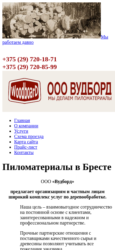 | AI-анализ | The web project "Пиломатериалы Брест" (Woodboard Brest) is a Belarusian company based in Brest that offers organizations and individuals a wide range of wood processing services. The company aims to build long-term partnerships with clients seeking reliable and professional collaborations. Strong partnerships with quality wood and raw material suppliers enable Woodboard Brest to meet all customer demands. The company's main areas of business include: 1. Forest harvesting services 2. Manufacturing: lumber, plywood, MDF, sawn timber, beams, sleepers, rails, full strip system, floorboards, wooden pallets. 3. Sales: metal roofing, roofing accessories (to custom sizes), corner connectors, snow retention systems, window frames, windbreak planks, skirting boards, top and bottom end panels, |