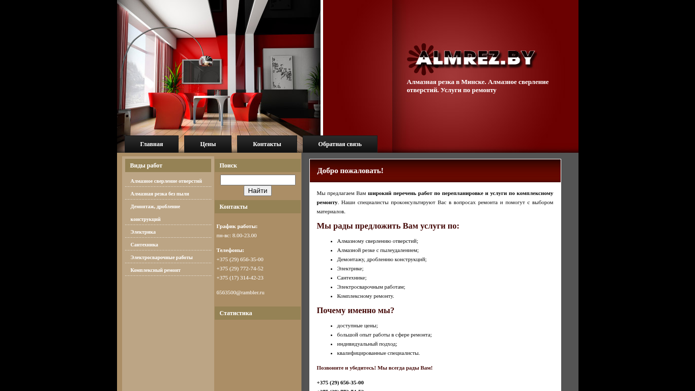 | Название / Заголовок | Алмазная резка в Минске. Алмазное сверление отверстий. Услуги по ремонту | almrez.by | almrez.by |