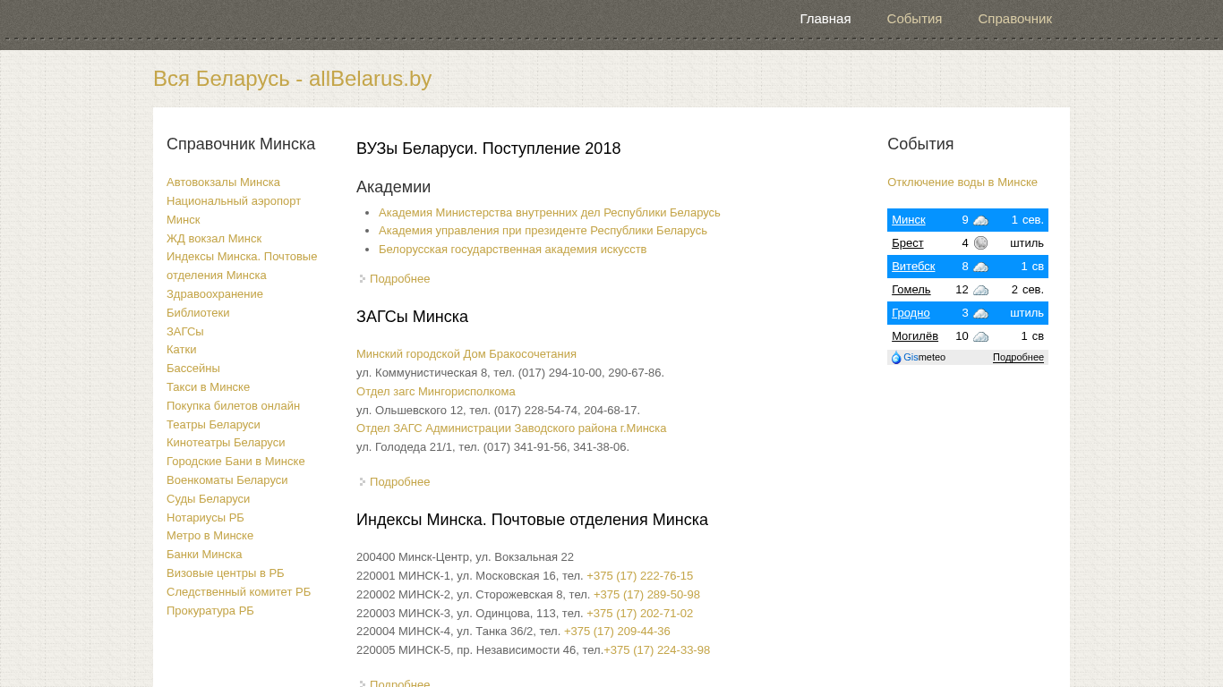 | SEO-лексика | минска тел беларуси беларусь 375 подробнее минске вся allbelarus академия загсы 017 индексы почтовые отделения минск события справочник вузы поступление |