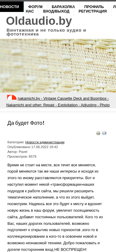 | SEO-описание | Oldaudio.by - сайт любителей винтажной и не только аудиотехники. Обзоры, советы по ремонту и восстановлению винтажной аудиотехники. Форум единомышленников в мире теплого лампового звука. |