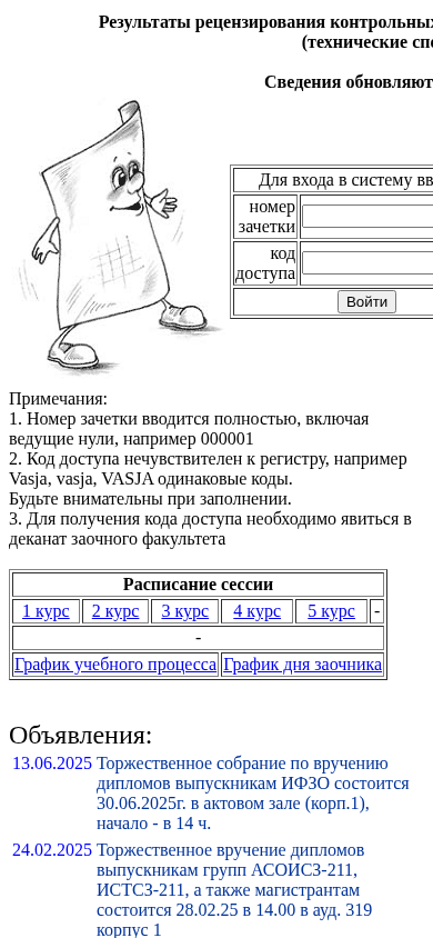 | AI-анализ | --- The portal zao.bru.by is a system for managing and reviewing control tasks for students of the Belarusian State University of Telecommunications (BSUIT) at the distance learning (zoom) faculty. The website provides automatic updates on the results of control task evaluations for technical specialties. Users can access the system by entering their student ID number and code of access. Important notes include instructions for entering the ID number with leading zeros, the code's insensitivity to case, and the requirement to obtain the access code from the dean's office. The website also features a schedule of classes and days for distance learning students, as well as various announcements, including information on graduation ceremonies and updated session schedules. |