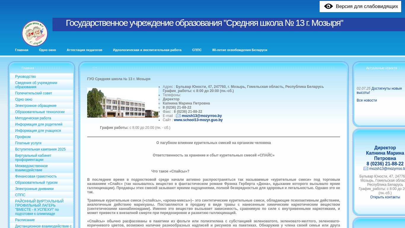 | Название / Заголовок | Средняя школа №13 г. Мозыря |