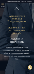 | AI-анализ | --- The website "Lawyer4you.by" is a legal service for criminal cases in Minsk, Belarus. The title and description indicate that the website offers guaranteed assistance from a lawyer with extensive experience in criminal law. The keywords include 'advocate for criminal cases', 'best advocate for criminal cases', 'advocate in Minsk', and 'defence in Minsk'. The top words include 'lawyer', 'will be', 'cases', 'Mikhail', 'Vladimirovich', 'criminal offences', 'advocate', 'criminal cases', 'matters', 'also', '375', and '328'. The website provides information on various types of criminal offences, including property crimes, crimes involving narcotics, and crimes against public service. It emphasizes the importance of consulting an experienced criminal lawyer for cases related to public service, as |