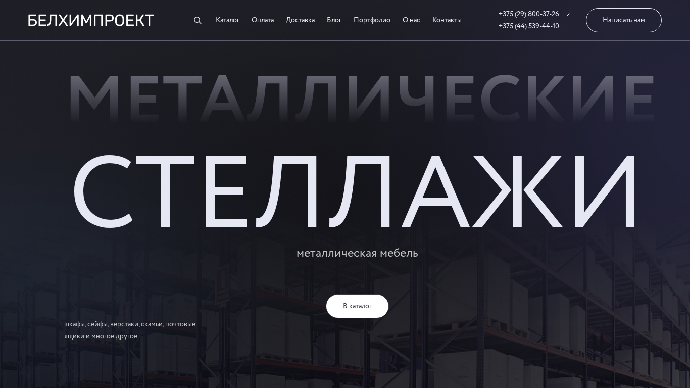 This online resource is a catalog and e-commerce website for OOO "BelHimProject" offering affordable metal office and production furniture in Minsk, Belarus. The website includes a catalog of various types of metal shelving, cabinets, desks, and other office supplies. Users can find products such as metal filing cabinets, wardrobes, and individual workstations. The website also offers heavy-duty shelving for industrial use and a variety of sizes and styles to accommodate different needs. Prices are listed for each product, and users can make purchases online or contact the company for more information. The website includes a blog, contact information, and a portfolio showcasing completed projects.