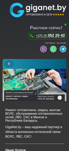 | AI-анализ | GigaNet.by is a website that offers a full range of services related to the repair, solder joints, installation, and maintenance of optical fiber cables (VOLS), local area networks (LVS), and passive optical networks (SKS) in Minsk and the Republic of Belarus. The company positions itself as a reliable partner in the field of optical fiber communication networks VOLS, LVS, SKS! The services offered include: repair of optical fiber cables in Minsk for 65 rubles, solder joints for xPON (GPON) for 65 rubles, relocation of optical access points from 65 rubles, emergency repair work on solder joints from 65 rubles, and connection of optical cables from 65 rubles. The site also provides services for the design of VOLS, preparation of documentation, dism |