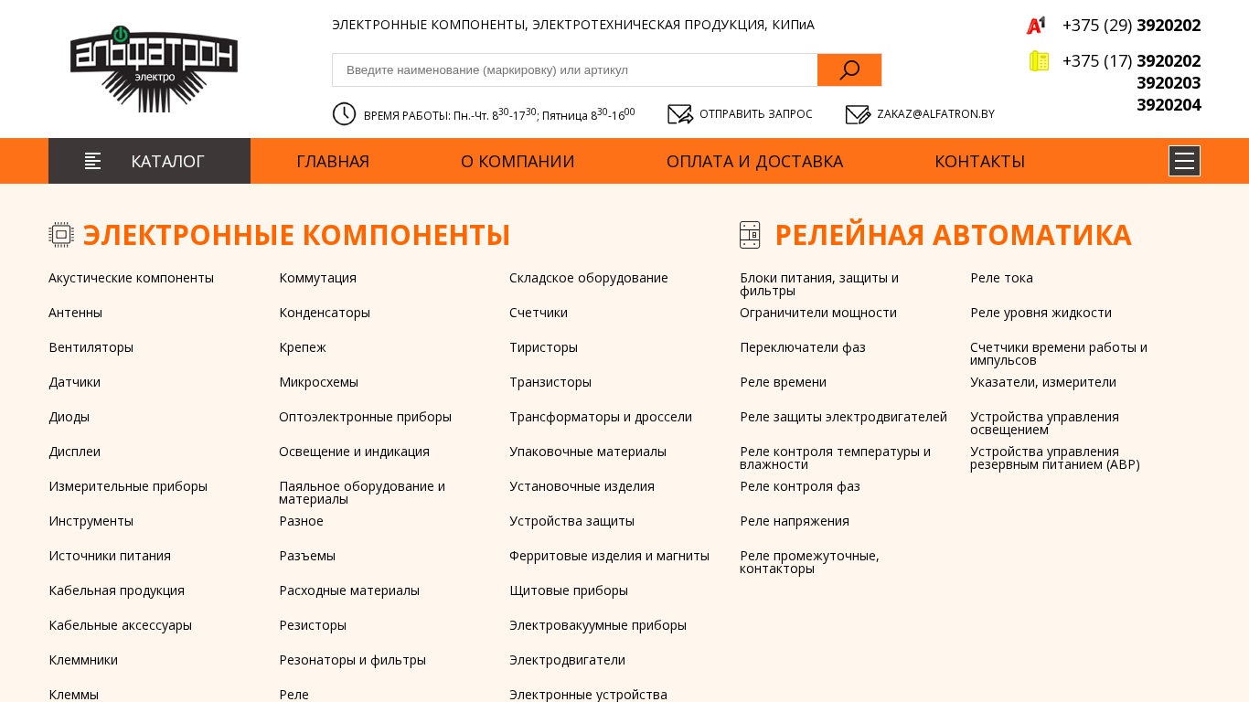 | Название / Заголовок | Купить Радиодетали в Минске - Альфатрон-электро |