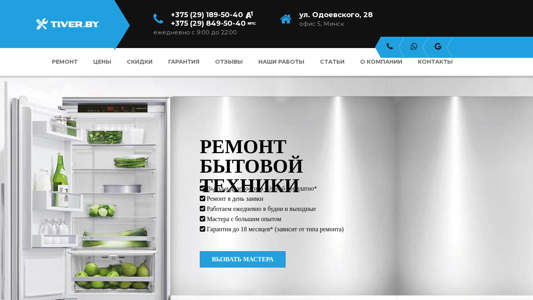 | SEO-описание | ᐉ⭐ Ремонт бытовой техники в Минске и области - Сервис мастеров ⏩ Tiver.by. ⚡ Выезд за час ✔️ Консультация ❤️ Качество и честная цена. ☎️ +375(29)189-50-40 |