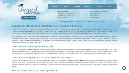 | SEO-описание | Образовательный центр предлагает выполнение любых студенческих работ на заказ: контрольные, курсовые, дипломные работы вы можете заказать в любом городе Беларуси. Работаем официально. При заказе нескольких работ предоставляются скидки. |
