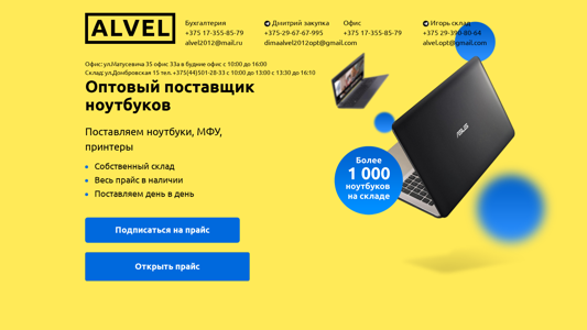 | alvel2012@mail.ru, alvel.opt@gmail.com, dimaalvel2012opt@gmail.com | |
