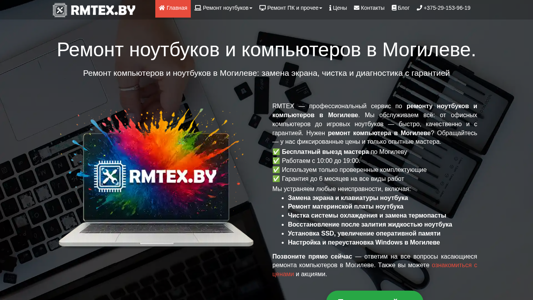 | Название / Заголовок | Ремонт ноутбуков и компьютеров в Могилеве — Бесплатная диагностика | RMTEX |