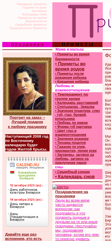 | SEO-описание | Народные приметы, Гадание по руке, Заговоры, Календарь снов, Приметы во время беременности, Свадебные приметы, традиционные Приметы |
