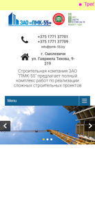 | AI-анализ | language: en This online resource is the official website of construction company ZAO "ПМК-55". It offers a comprehensive range of services for the execution of complex construction projects throughout the Republic of Belarus. The company specializes in the construction of residential buildings (houses, cottages, multi-apartment buildings), commercial real estate (industrial buildings and facilities, retail spaces), social and cultural facilities, turnkey construction, and various other construction services. ZAO "ПМК-55" was established in 2011 as OOO "Аналог-Строй" and quickly gained recognition in the Belarusian construction market due to the professionalism and high qualifications of its staff. In 2020, OOO "Аналог-Строй" was reorganized into ZAO "ПМК-55", |