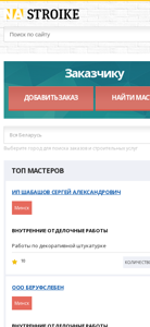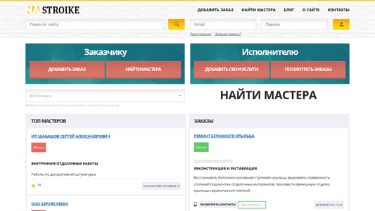 | AI-анализ | --- This website is an online platform for connecting clients with qualified builders and contractors in Belarus. Users can post details of their construction needs and receive contact information from relevant professionals. The site offers various categories for searching and filtering services by city, type of work, and top-rated providers. Services include but are not limited to interior renovation, tile installation, and roofing work. The website also features a blog and a section for adding and managing orders, as well as a registry for new users. The domain is .by and the title is "NaStroike.by! Order construction services or find a master." |