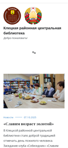 | AI-анализ | The website is the official homepage of Kletskaya Regional Central Library in Belarus. The title translates to 'Kletskaya Regional Central Library – Welcome!' The description section includes the words 'news', 'events', 'new arrivals', and 'propaganda of books' as keywords, indicating that the site provides information about library news, upcoming events, and new book arrivals, as well as some form of book promotion. The top_words data reveals that 'news' and 'events' are the most frequently used words on the site, followed by 'new arrivals' and 'propaganda of books'. The site appears to have an electronic catalog, a 'Bank of Data Kletschina', and social media presence. The library also seems to have a club named 'Собеседник' (The Conversationalist), which holds events such as 'Славим возра |