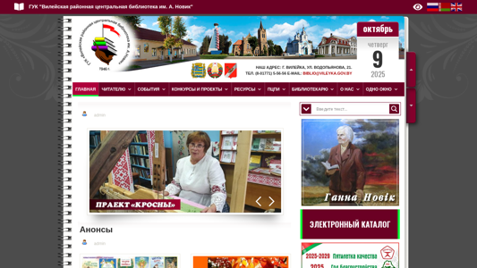 | AI-анализ | This online resource is a website for the public library network of Vilnius District in Belarus. It is maintained by the "Vilnius District Central Library named after A. Novik." The website provides access to various resources and services related to the libraries in the district, including full texts of various materials and records of library events. Keywords associated with the website include words related to public libraries, months of the year from October 2016 to October 2025, and the term "villib." The website is available in Belarusian language. |