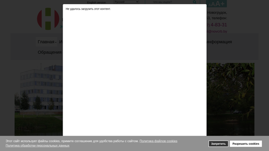 | AI-анализ | --- The portal "Novogrudskaya Centralnyy Raionnyy Bolnitsa" (Novogrudsk Regional Hospital) provides information on the hospital's services, including its location, contact details, and the schedule for various health services such as consultations, dispensary visits, and hotlines. The website also includes a section for job vacancies and news. Visitors can find information on the hospital's administration, structure, and patient services, as well as useful information on health topics and frequently asked questions. The website uses cookies and has a policy on their use. The hospital's address is given as ul. Volchetskogo, 53, Novogrudok, 231400, Belarus. The phone number is (01597) 4-83-31 and the email address is mail@novcrb. |