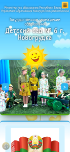 | AI-анализ | This website is for the Kindergarten No. 6 in Novogrudok, Belarus. It provides comprehensive information about the kindergarten, including its leadership, collective, news, and licensing details. The site includes sections on the history and traditions of the kindergarten, its governance, and various educational and support initiatives. It also features a labor protection section, a portal for rating the quality of services, and an e-government service for citizen requests. The site is organized around various administrative procedures and provides information on the rights and responsibilities of citizens in these processes. It includes contact information for various offices and hotlines, as well as an interactive map and information on safety and healthy living. The site also offers information on admissions, fees, and additional educational services. It is part of the Belarusian education system and includes resources for teachers and special education professionals. The site is available in Belar |