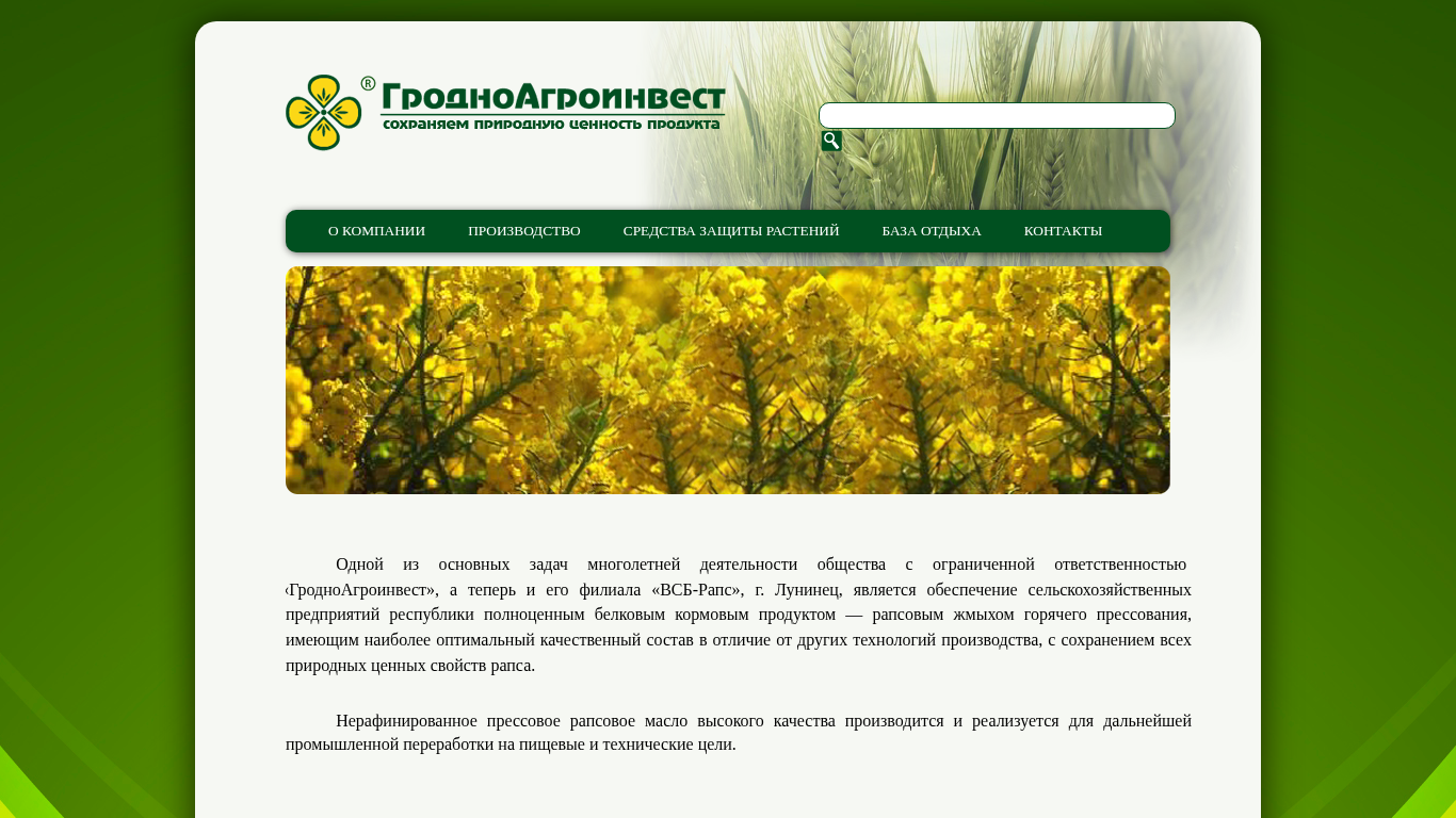 | Название / Заголовок | ООО "ГродноАгроинвест" - производство рапсового масла и жмыха, реализация средств защиты растений, микроудобрений, семян |