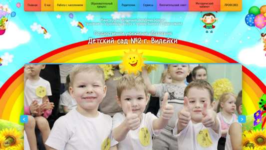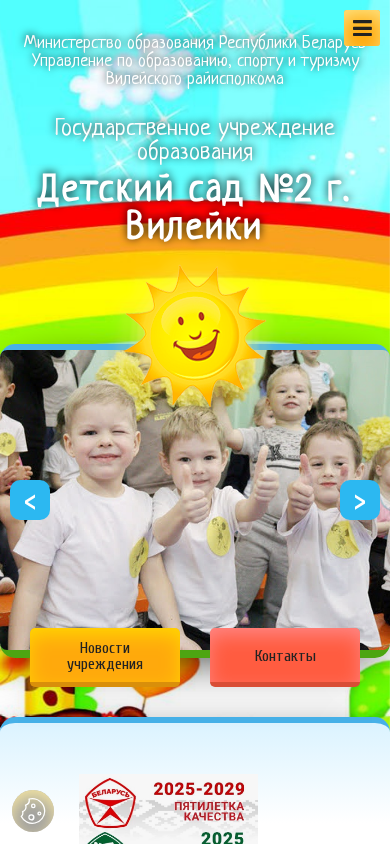 | AI-анализ | The web project "Детский сад №2 г. Вилейки" (Children's Kindergarten No. 2 in the city of Vilnius) provides information about the kindergarten's schedule, admission conditions, administration, faculty, important documents, news, and anti-corruption activities. The website also features interactive maps, historical information, social media links, and guidelines for pedagogical workers. The year 2025 is highlighted as the Year of Country Improvement, and there are sections on working with the population, educational processes, and safety rules. Additionally, the website offers advice from psychologists, defectologists, and the kindergarten director, as well as information on nutrition, rules for visiting the kindergarten, and free places. The site also includes a parent club project, summer camp details, and additional educational services for parents. The contact information, working hours, and phone directory |