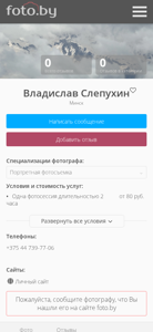 | AI-анализ | The website belongs to Vladislav Slepuhin, a photographer based in Minsk, Belarus. The main focus of the site is on portraiture photography as indicated by the title and the description tag. The site offers various photography services, including portraits, love stories, and architectural photography. There is no direct mention of prices or contact information on the site, but it is noted that one photography session lasting two hours costs 80 rubles. The site has received no reviews yet in the given category. The domain name is slepuhin.foto.by. |