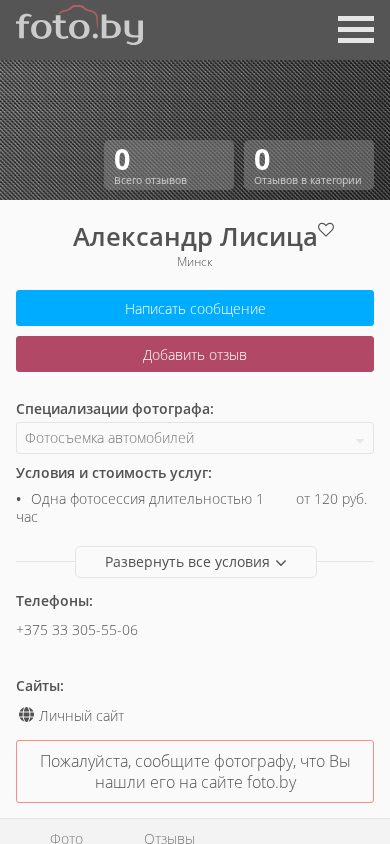 | AI-анализ | The portal auto.foto.by is a photography website specializing in automobile photography by Alexander Lisica from Minsk, Belarus. The site features a catalog of photographers, with a separate category for automobile photography. The photographer Alexander Lisica's page on the site includes 1 hour long photo sessions starting from 120 rubles, and his services are available in Minsk. The website also includes a blog, a gallery of his work, and contact information. |