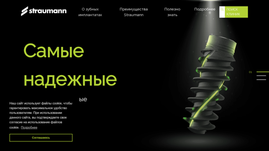 | AI-анализ | The website Straumann is dedicated to promoting high-quality and reliable Swiss-made dental implants. The description indicates that these implants help restore lost teeth. The site uses cookies to ensure maximum convenience for users and requires their consent. Straumann implants are known for their superior performance, with a study in Sweden showing their survival rate to be 60 times better than that of other manufacturers' implants. The implant's unique features include the patented Roxolid alloy, which is stronger and more biocompatible, and the SLActive surface, which accelerates implant integration by half. Straumann holds a 25% share of the global implant market. The website provides information on Straumann's presence in various Belarusian cities, including Minsk, Brest, Soligorsk, and others, and offers contact information for the local representative, OOO " |