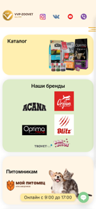 | SEO-описание | Компания «ВВП-ЗооВет» более 20 лет на рынке Зооиндустрии! Импортер кормов супер-премиум, холстик классов и ветеринарных диет для кошек и собак от мировых производителей. Компания предлагает новую концепцию для ваших домашних любимцев: питание по законам природы, используя новейшие технологии производства, высокое качество ингредиентов от брендов Optimanova/Испания, Blitz/Россия. Представляем уникальные ветеринарные рационы Trovet+/Испания и Blitz Vetline/Россия |