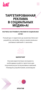| AI-анализ | The web project "Targeted Advertising in Social Media, IT SHAG" is a course offering for targeted advertising in social media, including AI training to effectively target advertising in social networks. The course covers marketing tools, campaign planning, creative development, launching campaigns in Meta environments such as Instagram and Facebook, and using various services and software including Meta Ads Manager, Facebook Business, Facebook Pixel, and Ad Library, Canva, Figma, CapCut, and others. Additionally, the course covers neurosets, using text, images, and videos from neural assistants, and certificates upon completion of the educational program. The course lasts for four months, with classes held every week on Tuesdays and Thursdays from 7:00 PM to 9:50 PM. The cost is 1860 BYN for the entire program or 1660 BYN paid in one installment |