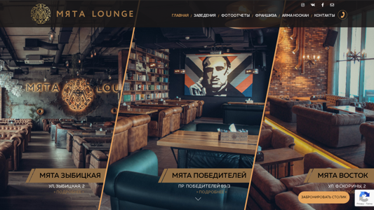 | AI-анализ | This online resource is a website for Mята Lounge, a café or lounge in Minsk, Belarus, promoting itself as the best hookah lounge with table reservations, prices, and reviews. The title of the website includes the phrases "Мята Lounge Минск - Лучшая кальянная," which translates to "Mята Lounge Minsk - Best Hookah," indicating the primary focus of the business. The description includes phrases like "заказа столов," "цены," and "отзывы," suggesting that the website offers information on making reservations, prices, and customer reviews. The keywords and top words also support this interpretation, with "мята," which means "mint," "lounge," "hookah," and "кальянная" being the most frequently used words. The website also provides contacts for three different locations and a booking |
