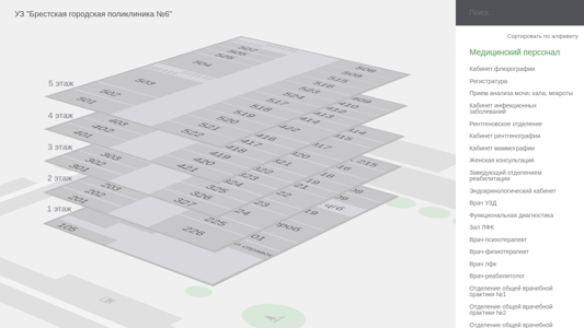 | AI-анализ | This online resource is the official website of Brest City Policlinic No. 6, located in Belarus. The site provides information about the clinic's various departments, schedules, and contact details. The main keywords associated with the site include 'работы' (works), 'график' (schedule), 'кабинет' (cabinet), 'отделение' (department), 'телефон' (telephone), 'время' (time), 'заболеваний' (illnesses), 'врача' (doctor), and 'системы' (systems). The site includes a registration desk, a cabaret, and several floors with different offices and departments, including fluorography, infectious diseases, rehabilitation, and rentergology. The fluorography cabinet offers lung X-ray services, and the registration |