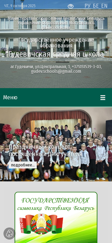 | Адрес | г.Гудевичи, ул.Центральная, 1, +375151539-3-03, gudev.schools@gmail.com |