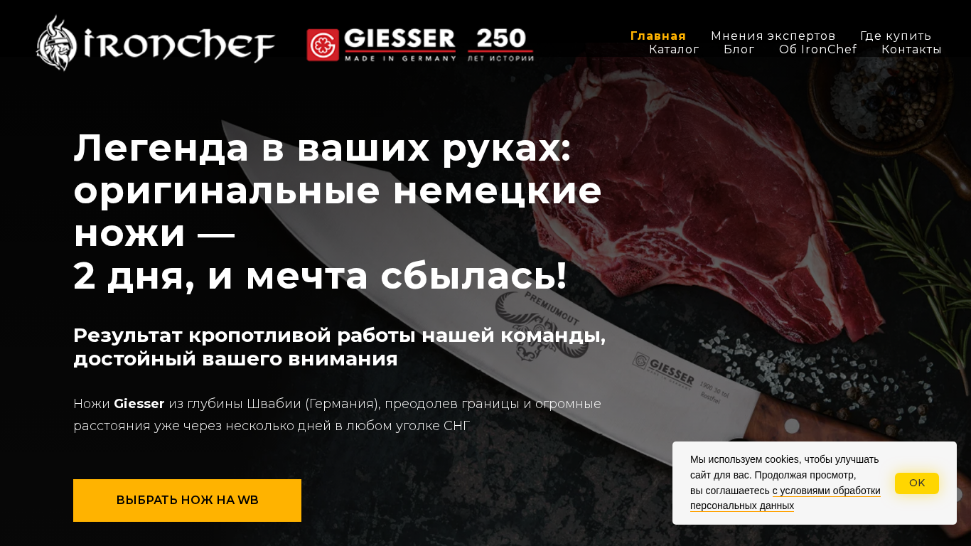 | AI-анализ | This website is an e-commerce platform selling professional German kitchen knives for delivery in Belarus and with quick shipping to Russia and Kazakhstan. The site offers a variety of Giesser knives, which can be purchased in Belarus and reach various parts of the CIS within a few days. The site mentions expert reviews, a catalog of all products on Wildberries, and a blog about IronChef. The main product categories include universal knives from the Prime Line series, musatory sharpening stones for hunters and fishermen, and the Giesser 2024/2025 line of dicing machines. The site also mentions contacts and a legend about quick delivery, emphasizing the quality of Giesser knives as the leading official dealer in Belarus for top European knife manufacturers. The site caters to both individual buyers and industrial clients, providing a wide range of over 2 |