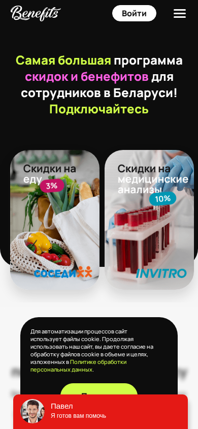 | Название / Заголовок | Benefits.by - Самая большая программа скидок и бенефитов для сотрудников в Беларуси! |