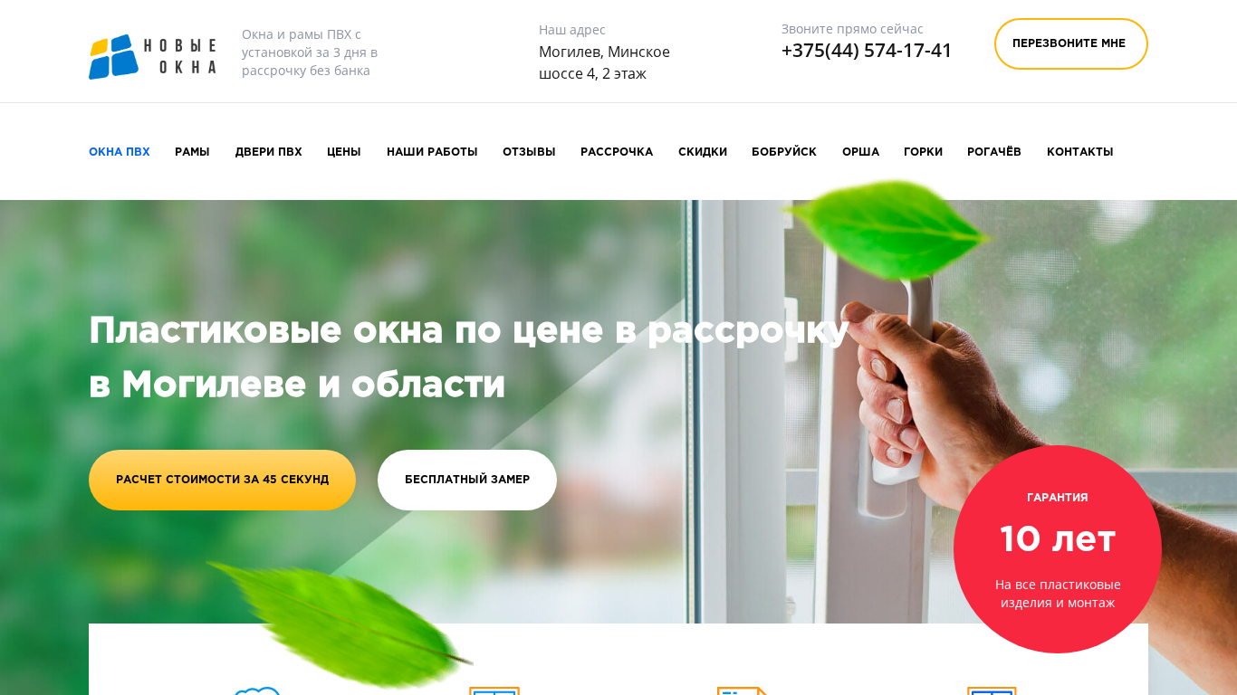 | AI-анализ | The web project "Cheap PVC windows in Mogilev with the manufacturer's financing" offers PVC windows and balcony frames for sale in Mogilev at discounted prices with financing directly from the manufacturer. Current promotions and discounts on PVC doors are available until the end of the week. A mosquito net is included as a gift. Keywords: Cheap PVC windows in Mogilev and the surrounding area. PVC windows and frames with installation in just three days, financed without a bank. Address: Mogilev, Minское shosse 4, 2nd floor. Contact us directly at +375(44) 574-17-41 for more information. PVC windows, doors, PVC frames, prices, our works, testimonials, financing, discounts, Bobruisk, Orsha, G |