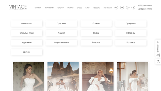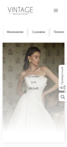 | AI-анализ | --- The website is a bridal salon named Vintage, located in Minsk, Belarus. It features a catalog showcasing various collections of wedding gowns, including Michetti, Cappadocia, Versailles, Romance, Mirabel, Lira, Madlen, Astoria, Voyage, Glamour, Prestige, Sharm, Armonia, Grazia, Jardine, Provence, and Mirabelle. The website offers the ability to request a sample and provides contact information. The website emphasizes the exclusivity of their designs, which are produced in-house, and their wide range of styles and fabrics to cater to various preferences. |