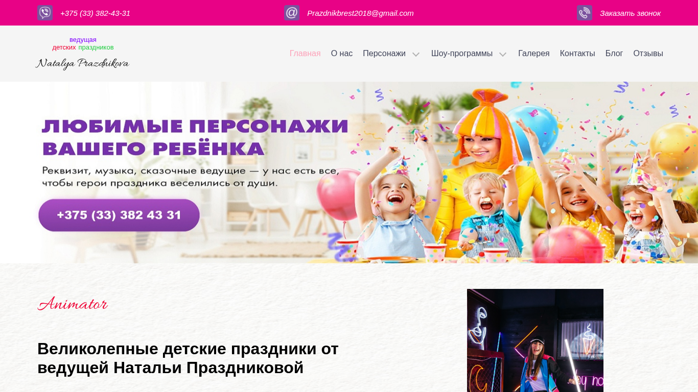 | Название / Заголовок | Аниматор в Бресте Наталья Праздникова | Детский праздник |