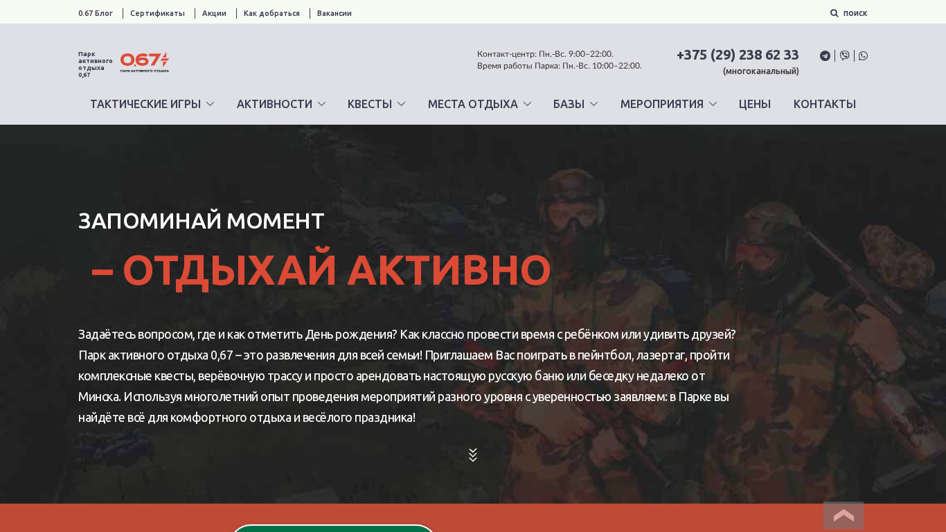 | Название / Заголовок | Парк активного отдыха 0,67 – ✔пейнтбол, ✔лазертаг, ✔квесты |