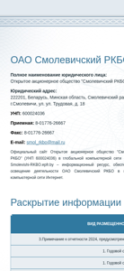 | Название / Заголовок | Смолевичский РКБО ОАО |