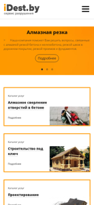 | AI-анализ | --- The portal idest.by offers quality demolition services in Minsk, Belarus, positioning itself as the best in the business under the name "Service of Demolitions" or "Idest". The website provides information on various services including almaznyj sverlenie (diamond drilling) of concrete and reinforced concrete, demolition by hand, mechanized methods, or explosives, as well as the supply of construction materials. The company aims to meet all clients' needs for timely and comprehensive material supplies for various projects. A catalog of services includes diamond drilling for doorframes, canal cutting, construction from scratch, and design. The company's slogan, "Надежный партнер, на которого можно положиться" (A reliable partner you can trust), highlights its commitment to delivering high-quality and affordable demolition services. |
