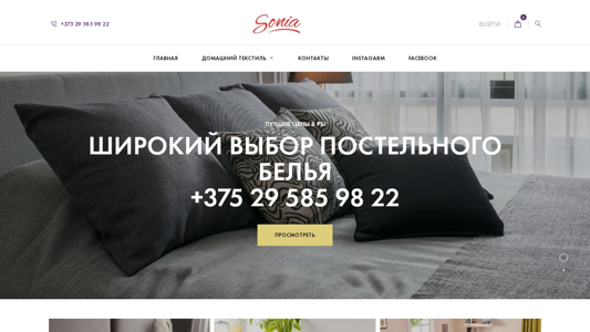 | AI-анализ | The web project "Sonia.by" is an online store specializing in home textiles, offering a wide range of products including bedding, blankets, pillows, covers, children's bedding and more. The website provides quick and easy access to a large selection of affordable home textiles with various sizes and designs available. Users can view and purchase items such as single and double European-sized bedding sets, children's bedding, and various sizes of pillows. The website also offers a section for customers to view and purchase individual items such as mats, covers, and bedding accessories. Contact information for the store is provided, including a phone number for customers to make inquiries or place orders. The website also includes links to social media accounts for customers to follow for updates and promotions. |