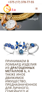 SEO-описание | Ломбард "Ситта" - 20 лет на рынке! Удобное местоположение ( Дом Быта в Чижовке). Принимаем в ломбард золото, серебро, лом. Скидки %% Звоните! +375173787755 |