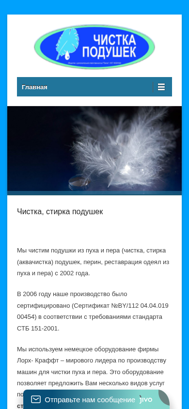 | Ключевые слова | чистка подушек стирка подушек аквачистка чистка пуха чистка пера стирка пера фрунзенский район ул лещинского притыцкого минск реставрация одеял пух перо оборудование для чистки стирки пуха и пера |