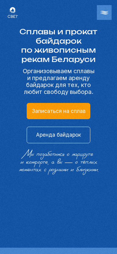 | AI-анализ | The web project "Zasvetomsvet.by" offers river rafting tours and rents kayaks for those who enjoy the freedom of choice. Customers can book a rafting tour or rent a kayak and are taken care of for route planning and comfort. A 20% discount is given for a second rafting tour. The team behind "Zasvetomsvet.by" aims to provide a memorable encounter with the beauty of Belarus, inspiration, and joy through their rafting tours and kayak rentals. They prioritize customer attention, safety, and comfort to ensure a light and enjoyable rest. The website provides information on their format of leisure, rental options, popular routes, and customer testimonials. Clients can register for a rafting tour, rent a kayak, and find answers to frequently asked questions. Contacts and tariffs |
