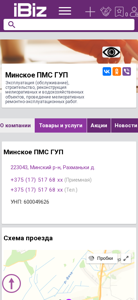 | AI-анализ | The portal is a business website for Minское PMS GUP, a company providing services for the operation, maintenance, construction, rehabilitation, and repair of meliorative and water management objects. The website includes sections for company information, products and services, news, job vacancies, and contact details. The main office is located in the city of Minsk, at the address 223043, Raahman'ki d. The company can be reached by phone at +375 (17) 517 68 xx (Reception) and +375 (17) 517 68 xx (General number). The website also provides a map with directions and business hours from Monday to Friday, 8:00 AM to 5:00 PM, with a lunch break from 1:00 PM to 2:00 |