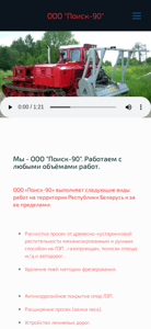 | AI-анализ | The web project "Поиск 90 — Поиск 90" is an organization named "Поиск-90" that offers services for clearing ditches and removing trees from power lines, gas pipelines, railway tracks, and roads in Belarus and abroad. The company's main activities include mechanized and manual ditch clearing, tree felling, anticorrosion coating for power line supports, expanding ditches, and building levee roads. The website provides contact information, including an address in Minsk, email addresses, and phone numbers for the deputy directors, Vołczuga Aleksiej and Zaблоцki Michaił, as well as a general reception number. The company has been operating since 1990 and has six years of experience working on projects for Minenergo, Beltransgas, and BelzhD. Services are provided using high-productivity |